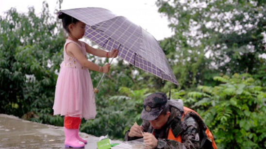 抗洪官兵暴雨中就餐,4岁小女孩的一个举动引众人模仿感动一片