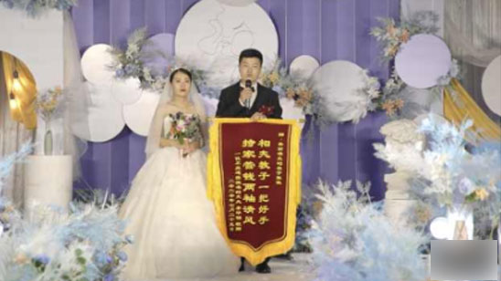 相恋6年修成正果 男子婚礼上送妻子锦旗:持家管钱两袖清风