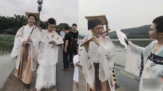 西湖成网红扎堆地!男子扮宁采臣牵手小倩:让遗憾变圆满