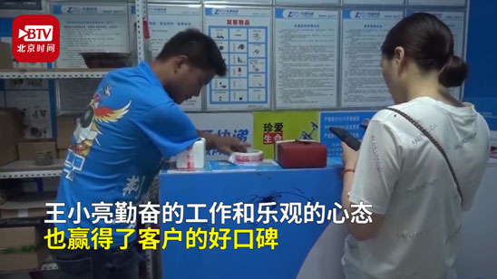 励志!独臂快递小哥月赚2万元:单手20秒打包好一个包裹