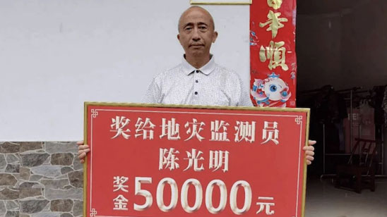 奖励5万元!他发出一张照片救下全村人 网友:应该的