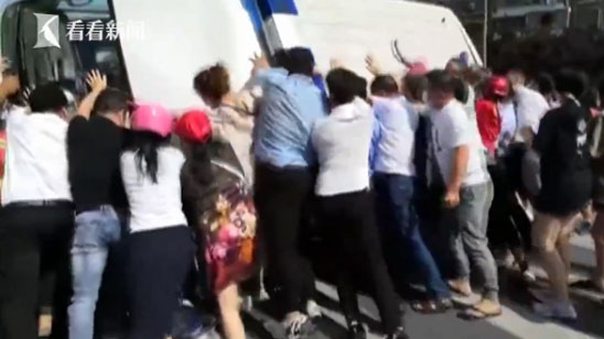 救护车被追尾侧翻 危急时刻一群人围了上来...