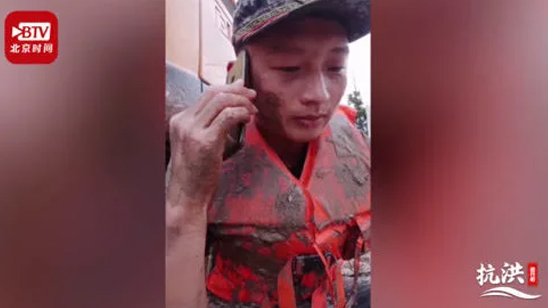 看哭网友!抗洪战士电话中骗妈妈“在训练”抹下眼泪继续搬沙袋