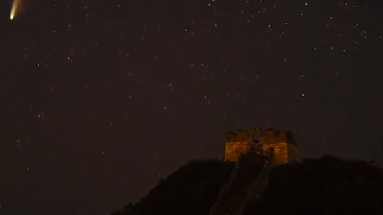 快来许愿!延时摄影记录新智彗星越过长城:错过再等6800年