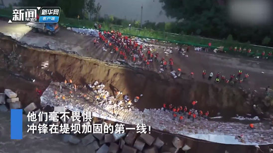抗洪一线解放军与抗洪武警擦肩而过 两支队伍高喊加油互相鼓励