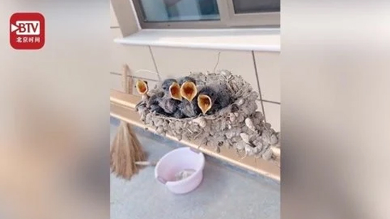 燕子在手动晾衣架上筑巢 网友:这住的可是高档电梯房