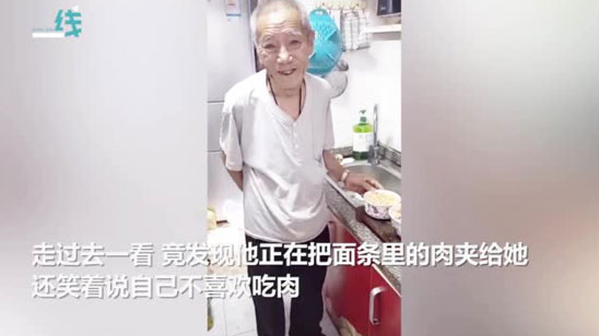 爷爷厨房半天不出来 孙女走近一看他竟为她挑肉 笑着说:我不爱吃