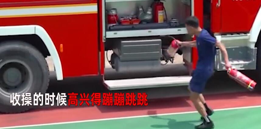 可爱!消防员训练拿第一获准外出 收操时蹦跳起舞