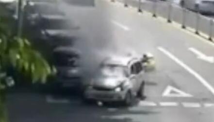 小学对面汽车自燃 交警声嘶力竭“咆哮”疏散群众