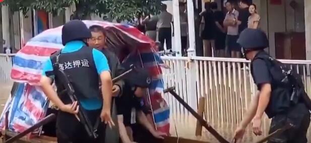 街道内涝押运员划船押运钞票 下船后塞给船长一张百元大钞