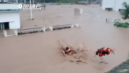 水漫厂房工人被困 消防员一个猛子扎进洪流……