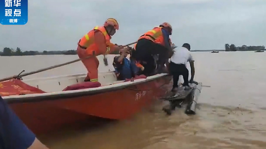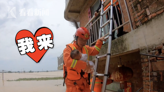 “我来!” 洪水救援现场 他一手托娃一手抓梯