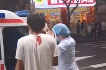 男子被高空坠落折叠刀直插后脑勺 自己走进救护车接受救治