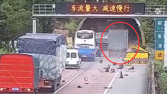 太惊险!货车下坡刹车失灵 横扫沿途10公里锥桶成功将车停稳