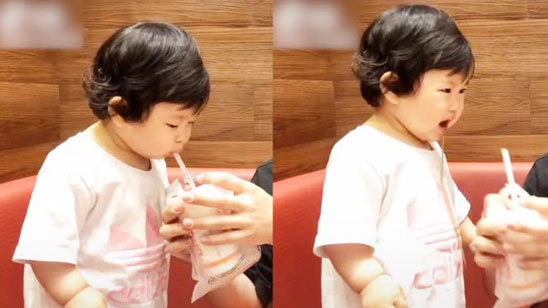 宝宝人生第一次喝可乐 满怀期待猛嘬一大口 下一秒的反应笑喷爸妈