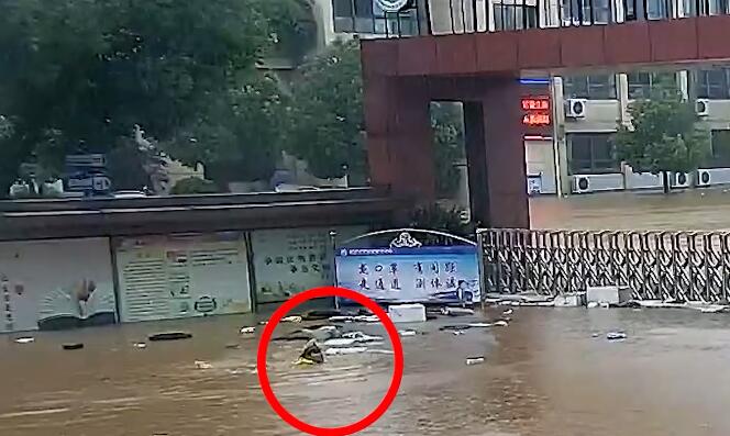 辛苦了!交警小哥游泳到学校门口查看受灾情况