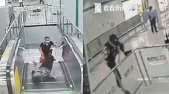 地铁内老人乘扶梯摔倒 他毫不犹豫纵身一跃