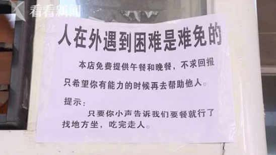 粉面馆贴出“暖心小纸条”:有困难请小声告诉我
