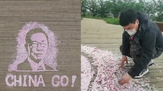中国加油!大连大学生用落樱拼出钟南山肖像 致敬伟大医护