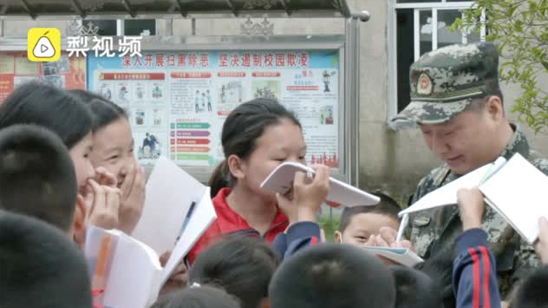 大型追星现场!武警官兵为村小捐校服 小学生围着武警叔叔要签名