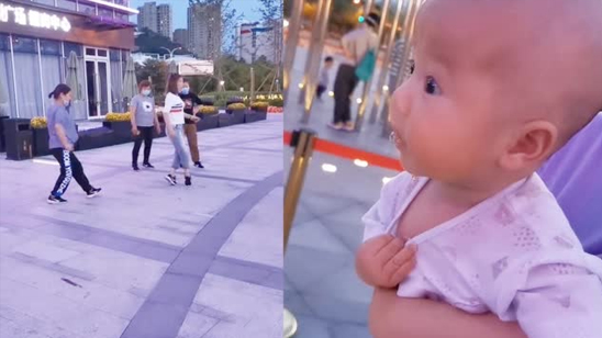 宝宝疫情期间出生 第一次出门见到广场舞 流着口水看得眼都直了