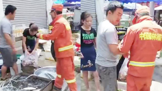 消防员下山买鱼给战友加餐 摊主死活不肯收钱 把鱼硬塞到炊事员手里