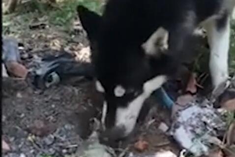 哈士奇刨坑埋葬幼崽遗体 狗主人:看得我心碎