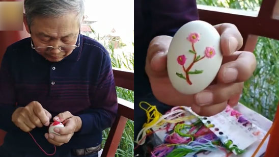 高手在民间!大爷疫情宅家憋出新绝活:蛋壳上刺绣