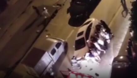 消防车被堵住急坏消防员 群众掀翻占用消防通道的私家车
