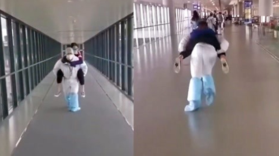 心疼!机场防疫人员背腿麻女子时摔倒 网友:隔着屏幕都觉得疼!