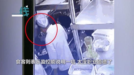 监控曝光!食客要求菜品重做 厨师竟弯腰向锅里吐口水 网友直呼恶心