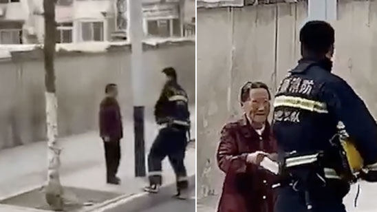 消防员出警归来偶遇奶奶 老人一个习惯让人泪目