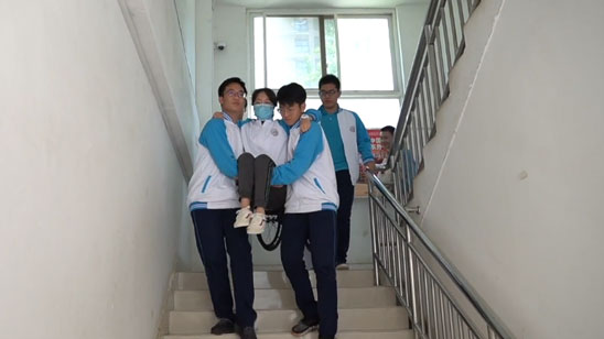 暖心!高一女生行动不便 男生组成志愿队:我们抬着你去上课