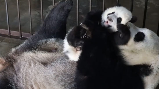 太甜了!熊猫母子分开一夜 再见时“宝妈”花式“宠娃”