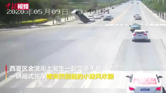 银川一货车被风刮翻腾空旋转360度 司机:幸亏系了安全带