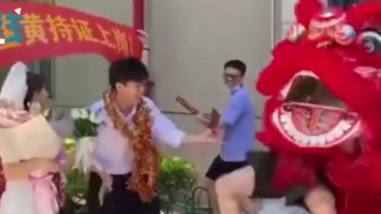 仪式感十足!男友领证当天准备舞狮表演 网友:小姐姐满脸写着拒绝