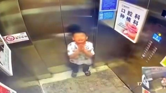 熊孩子电梯撒尿被困2小时 得到教训后向摄像头双手合十“求饶”