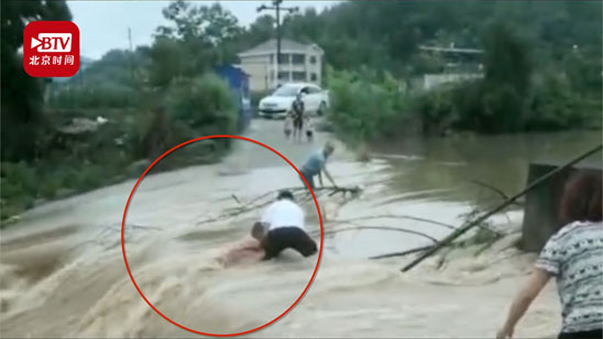 惊心动魄!绵阳村民开闸泄洪失足挂在堤坝 村书记趟入洪流一把拽起