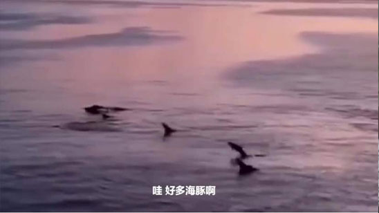美不胜收!南海科考船晚霞中偶遇成群海豚