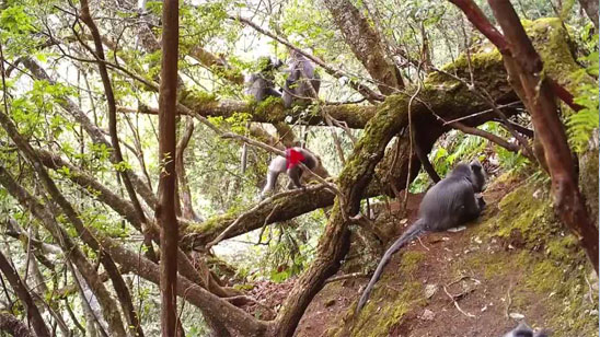 超萌!红外相机拍到灰叶猴家庭生活场景