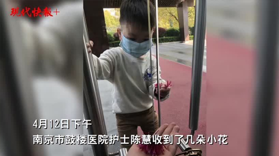 3岁儿子隔着玻璃门探望武汉归来的护士:“妈妈,给你小花!”
