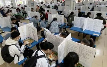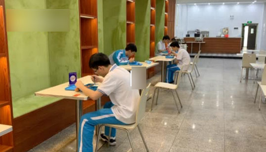 神操作!食堂餐桌隔板印满知识点 高三学生边吃边复习