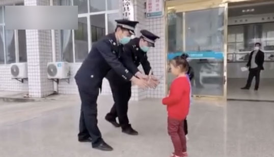 警察蜀黍向两位5岁女孩敬礼 背后原因太暖了
