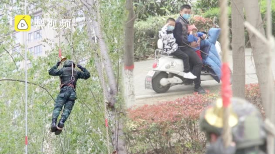 特战队员悬空与小朋友互敬军礼:虽不标准,但很暖心