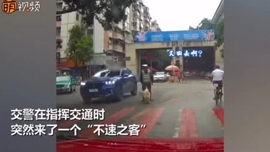 “直行!右转!”可爱狗狗突袭马路 交警用标准交通手势指挥神交流