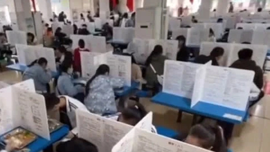 神操作!学校食堂餐桌隔离板印满知识点 高三学生边吃边复习