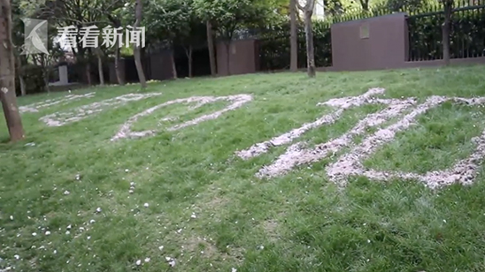 环卫工用落樱摆字为中国加油 被赞“振奋人心”