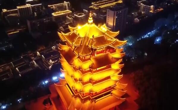 久违了黄鹤楼 开启灯光照明的黄鹤楼璀璨夺目