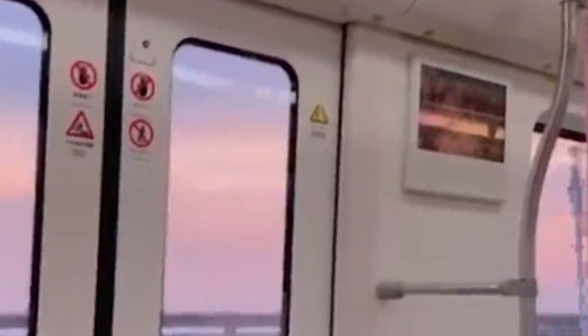 武汉地铁二号线刷屏 窗外粉色的天空宛如童话世界 网友:武汉回来了