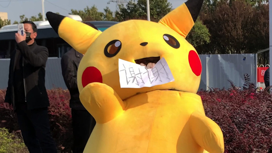 武汉市民扮皮卡丘送驰援武汉医疗队撤离